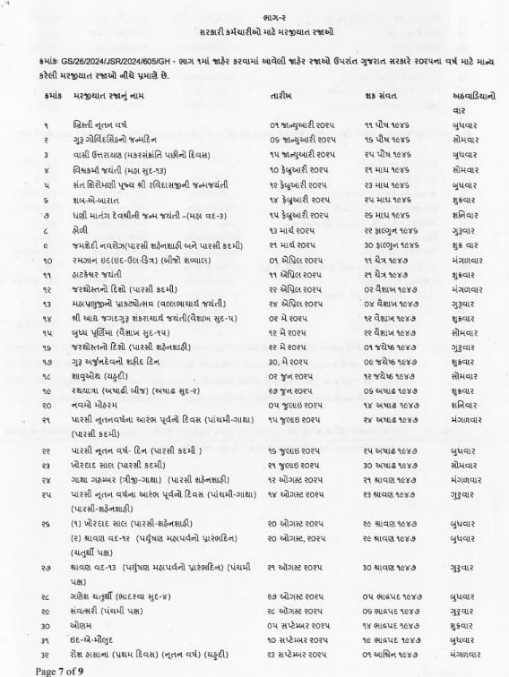 | ગીર સોમનાથ જિલ્લાનું 2025નુ રજા લિસ્ટ | અહિં કલીક કરો |